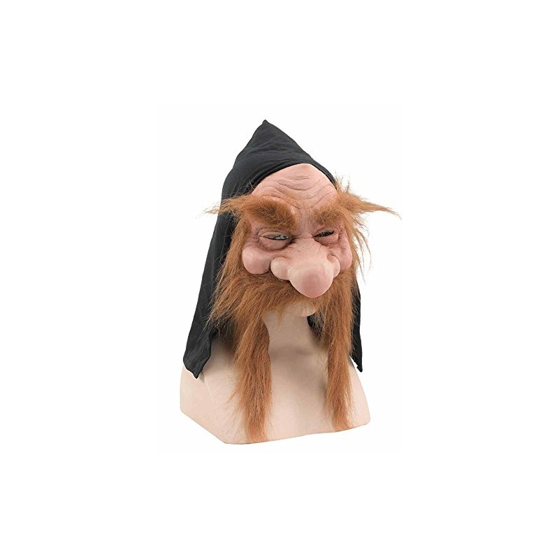 Gnome Dwarf Rubber Panto Mask with Light Brown Beard & Black Hood