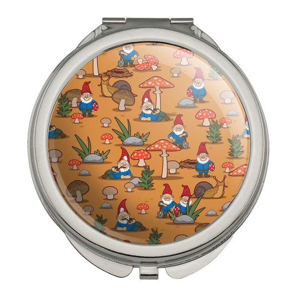 Gnomes Toadstools and Mushrooms Pattern Compact Travel Purse Handbag Makeup Mirror