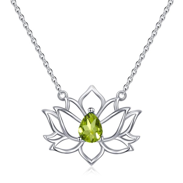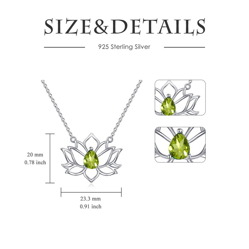 Gnteey Natural Peridot Necklace 925 Sterling Silver 7X5 mm Pear Cut Peridot Lotus Pendant Necklace for Women