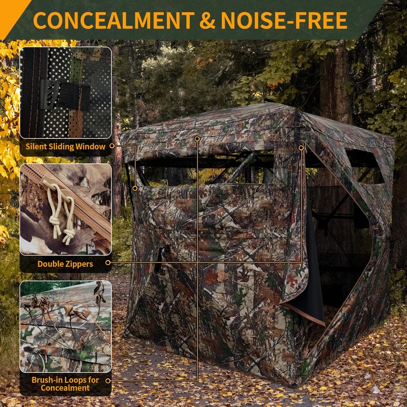 - 【Silent】: Features three adjustable silent sliding Windows that will help you stay undetected while hunting. You can take blind anywhere to hunt deer, Turkey, elk, etc.