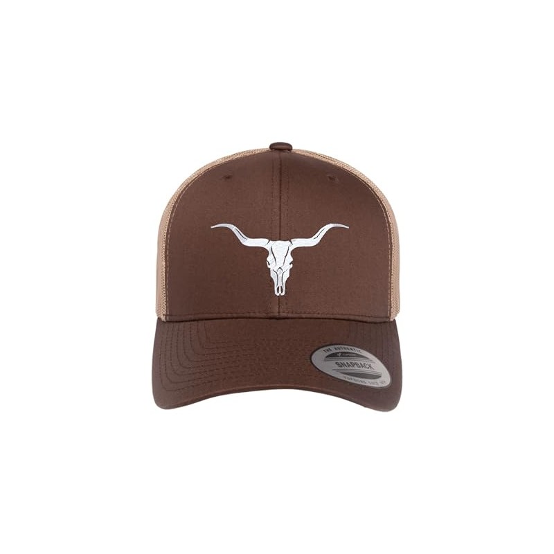 Go All Out Adjustable Brown/Khaki Structured Trucker Steer Skull Cowboy Western Structured Trucker Cap