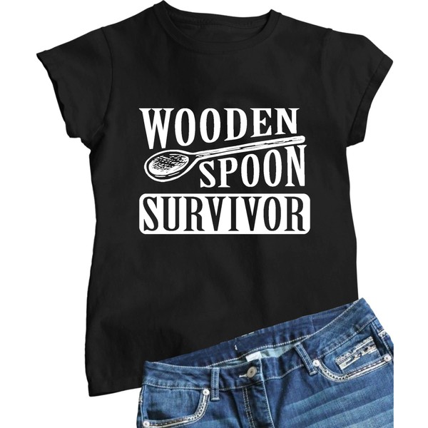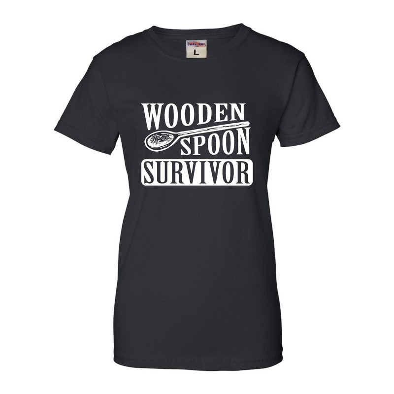 Go All Out Large Black Womens Wooden Spoon Survivor Funny T-Shirt