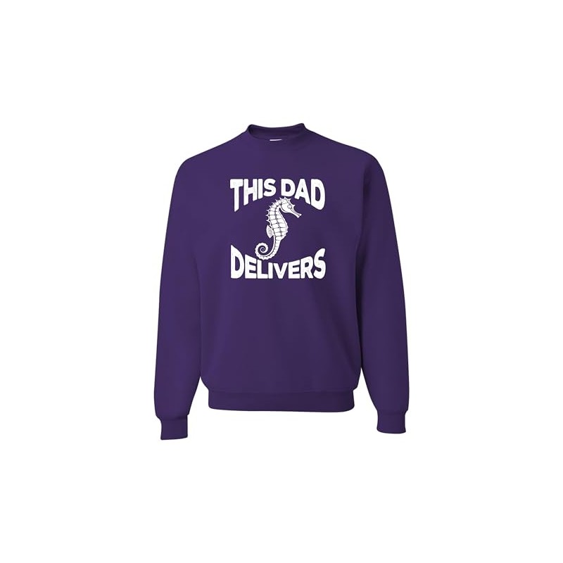 Go All Out XX-Large Purple Mens This Dad Delivers Funny Idea Sweatshirt Crewneck