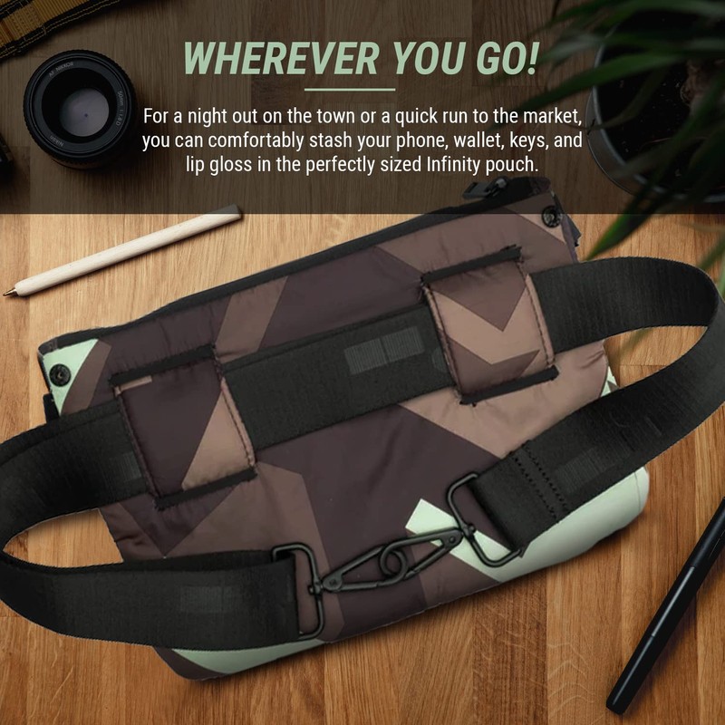 - Olive Camo Lightweight Water Resistant Crossbody Bag Or Belt Bag; Detachable Adjustable Strap Included To Use This Snap Out Pouch As A Crossbody Bag Or Belt Waist Bag