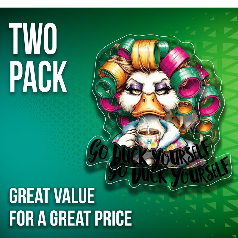 Go Duck Yourself Stickers - Funny Duck Animal Puns Punny Funny Sarcasm - 5" On Longest Side - 2 Pack - High Adhesive Tack - Bumper Stickers for Cars, Truck, SUV - Made in USA - PLS250