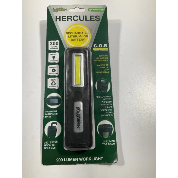 Go Green HERCULES COB LED Worklight Flashlight 200 Lumens, USB Rechargeable