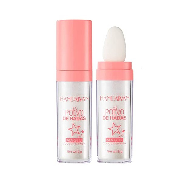 Go Ho Polvo De Hadas Shimmer Face Highlighter Powder Stick,Body Glitter Highlighter Makeup,High Gloss Sparkle Loose Highlight Powder for Face Body Hair Party Makeup (#01 White Moonbeam)