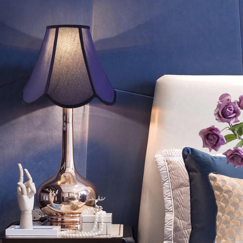 GO&SO Navy Blue Lamp Shade Scalloped Lamp Shade,Petal Edge Braid Bell Lamp Shades,Lamp Shades for Table Lamps,Fabric Lampshades Medium,6"Top x 13"Bottom x 10.6"Vertical Height (Spider) -Easy Assembly