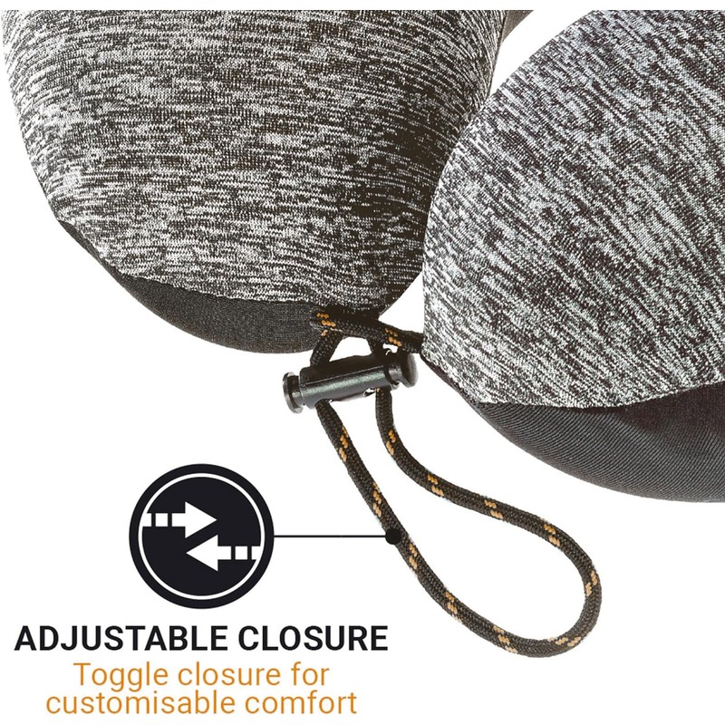 - Stylish Design: The smooth gray marl cover of the neck pillow ensures that there is no compromise on style as well. The pops of bright orange accents on the woven label, rear cover zipper, and toggle cord add to the appeal of the pillow.