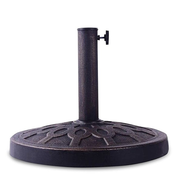 - ⛱️【Classic Round Base】: 17.5" round umbrella base is suitable for most outdoor umbrellas. Such classic will never be out of time. Designed with flower decorative pattern and bronze finish, this umbrella stand is much more attractive.
