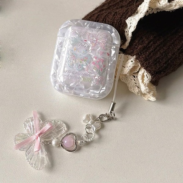 GO-VOLMON for Airpods 4 Case Cute Girly Strap, Woman Kawaii Soft Protective Cover for Airpods 4th Generation with Lovely Keychain Lanyards Aesthetic Design, White Shell with Butterfly