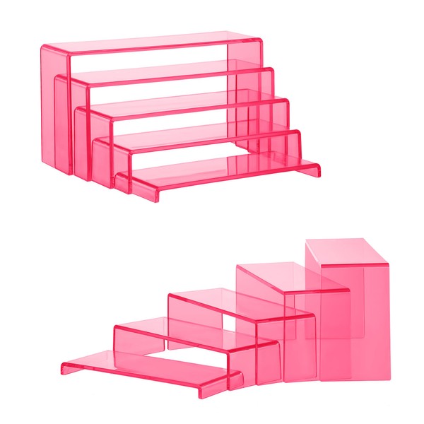 Goabroa Acrylic Display Risers, 2 Sets 10 Pcs Perfume Stand Organizer, Rectangular Riser Shelves for Figures, Cupcake, perfume display, Wine Glass and Handbag display,Transparent Pink