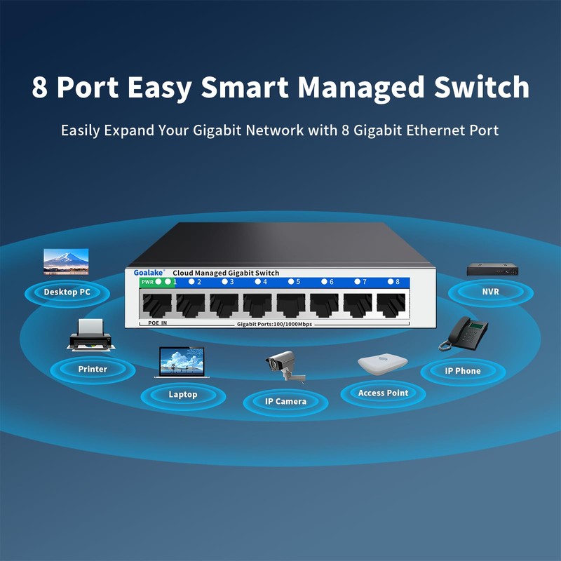 Goalake Managed Network Switches 8 Port Gigabit Ethernet LAN Switch, Cloud Ma...