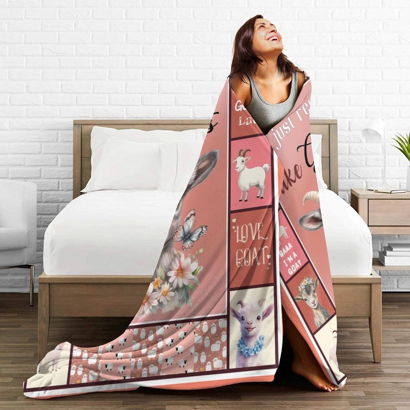 Goat Blanket Soft Cozy Sheep Plush Throw Blanket Super Warm Fleece Fuzzy Bedding Blanket Goat Sheep Gifts for Kids Girls Boys Women Bed Decor Stuff 40"X50"