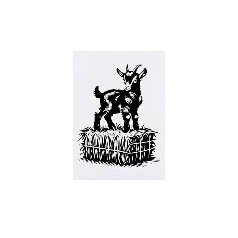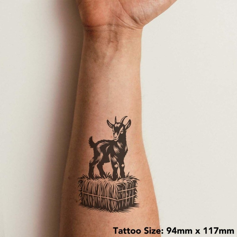 'Goat On Straw Bale' Temporary Tattoo - Water Resistant, Skin-Safe, Non-Toxic Transfer (TO00075477)