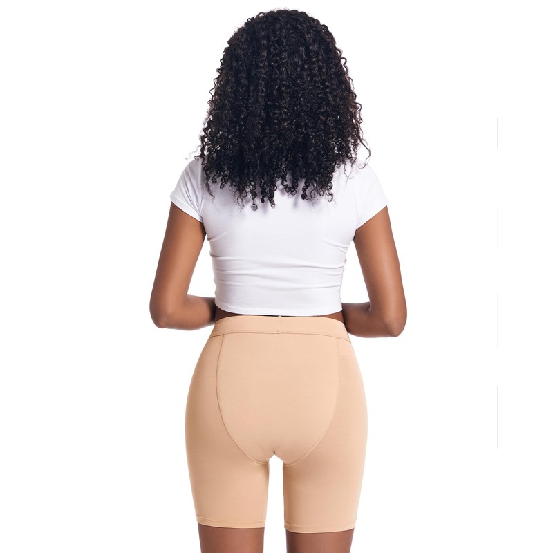 - Enjoy unparalleled comfort and coverage with our Anti-Chafing Hi-Rise period underwear in a 5-inch inseam slip shorts style. Say goodbye to irritation as it features a fabric waistband and no side seams for a seamless and irritation-free experience. Move freely and feel confident knowing you have full front-to-rear coverage while staying protected against chafing.