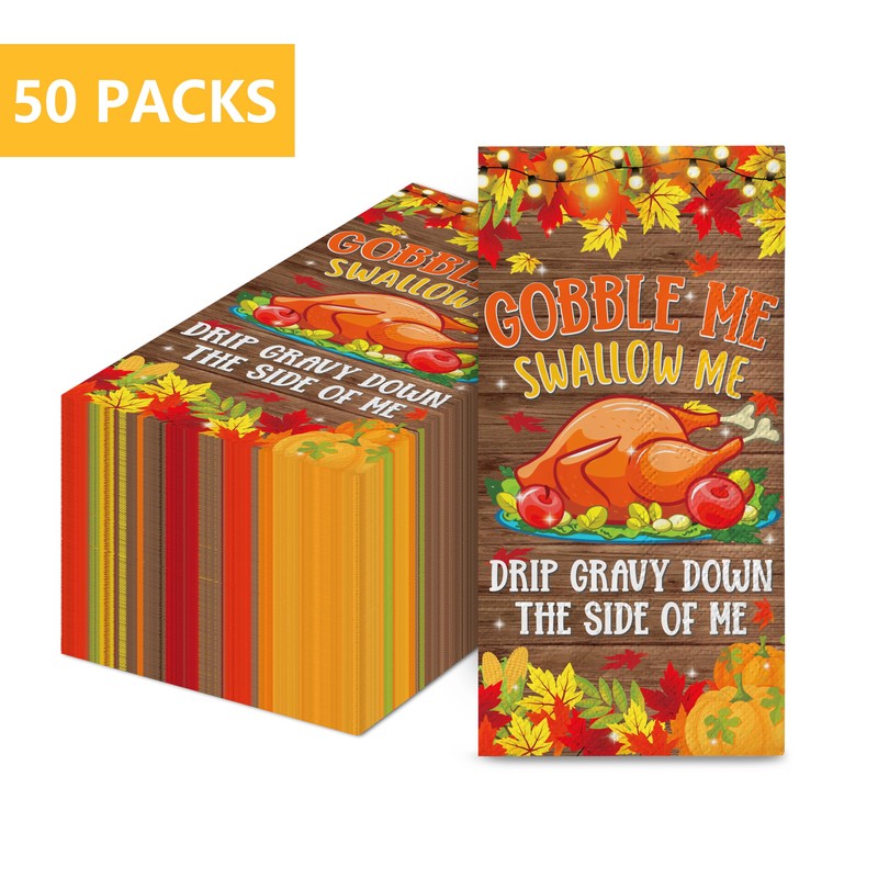 Gobble Me Swallow Me Napkins, Thanksgiving Napkins, Friendsgiving Napkins, Friendsgiving Decorations, ZJ Happy Thanksgiving Decorations, Friendsgiving Party Decorations (4.3 x 7.9 In, 50-Pack)