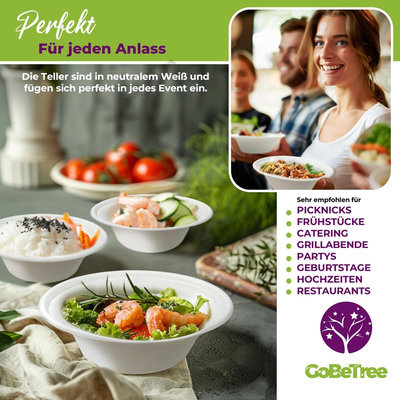 - Package contents: the package contains 50 high-quality white sugar cane bowls for single use. The sugar cane bowls contain 350 ml.