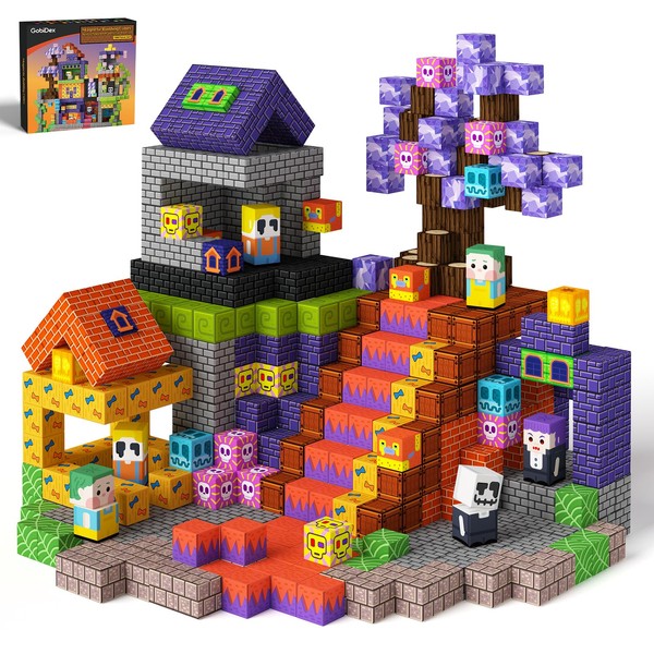 GobiDex Magnetic Building Blocks Pack of 100 - Haunted City Magnetic Blocks for Children, Montessori Toys & Puzzle Games, Creative Gift for Boys and Girls from 3-4, 5-6, 7-8, 9-10 Years