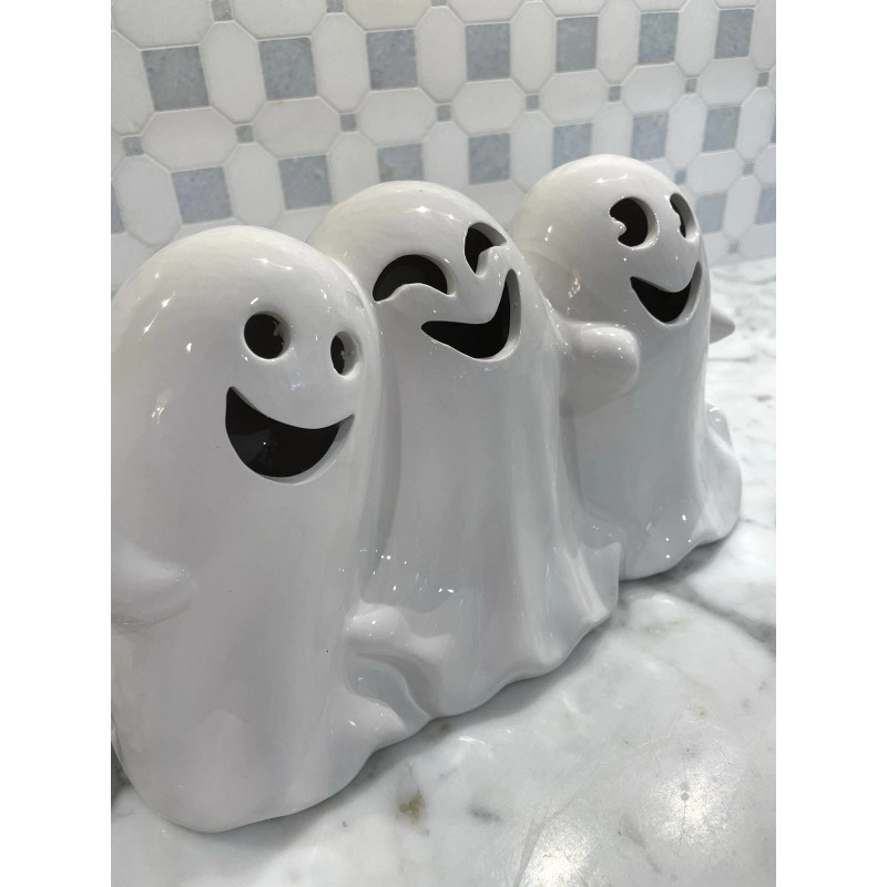 Goblin and Ghoul Halloween Ghost Decor Light Up Tri of Ghosts Ceramic New 3 Ghost Decoration