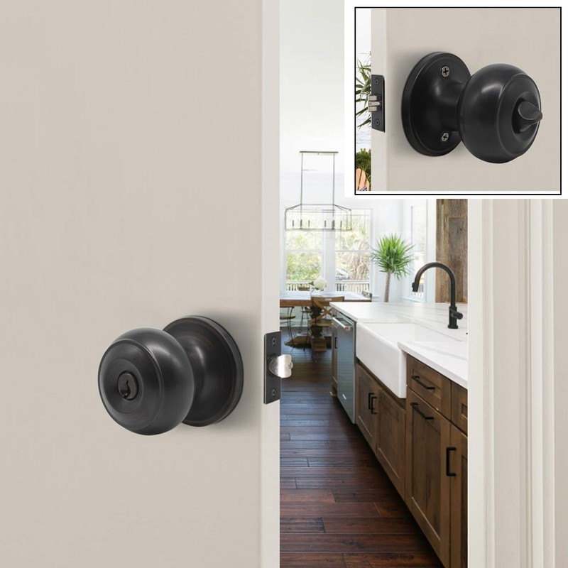 - 【Material&Style】High-qualified stainless steel made,firm,heavy duty,anti rust.Flat Ball style door knob.Oil Rubbed Bronze Finished