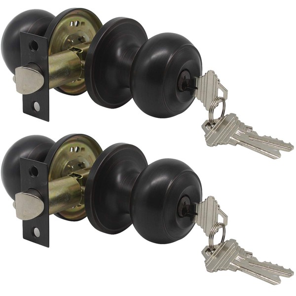 **Oil Rubbed Bronze Keyed Alike Door Knobs for Front Door Exterior Door** The knobs are keyed alike.You just need to take one key for several doors at your home/office. The entry lock works for both right and left handed doors.It is keyed and can be locked outside for security.There is a thumb-turn button on the inside knob, by which you can lock the door inside for privacy/security.This entry lock is pefect for exterior/interior doors. The knob is made of high-quality stainless steel,anti rust and sturdy. Ball shape knobs in oil rubbed bronze The backset is adjustable between 2-3/8-Inch and 2-3/4-Inch.The lockset fits for standard doors between 1-3/8-Inch and 1-3/4-Inch thick. The lock will be sent from USA. You can receive the package in 1-5 working days. Gobrico make your life easy and wonderful. **Package Include:** 2 Entry locksets (suitable for right and left-handed door) 6 Keys(the same) Adjustable latch(2-3/8" or 2-3/4") Strike plate installing screws installation instruction