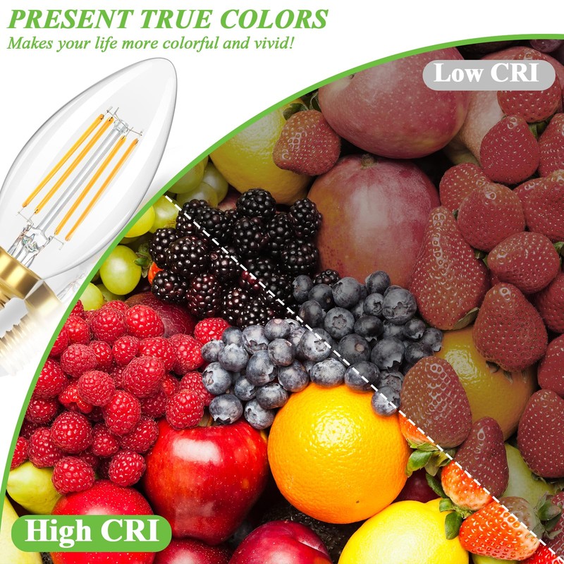 - Ultra-Bright & Energy-Saving90% Less Power, 100% Brightness!Say goodbye to sky-high electricity bills! Our LED candelabra bulbs deliver the same full brightness as a traditional 60W incandescent bulb while consuming only 6Winstantly cutting your energy costs by up to 90%. With 630 lumens of powerful, flicker-free light, you can brighten up your home for hours without worrying about energy waste. Plus, their 25,000-hour lifespan means fewer replacements, long-term savings, and a more sustainable lifestyle