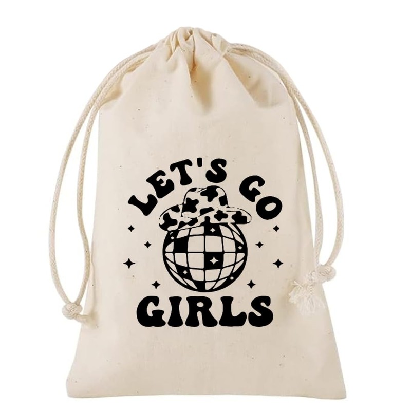 gobyhumm 10 Premium Organic Muslin Drawstring Bags 4x6 - Wedding Party Favor Set for Bachelorette Hangover Kits & Holiday Gifting | Reusable Double-Layer Unbleached Cotton Pouches (LET'S GO GIRLS)