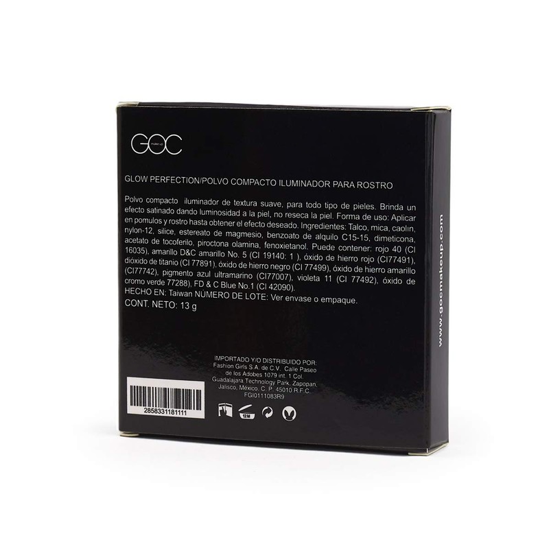GOC, Iluminador compacto de larga duraci贸n, Glow Perfection, Alta pigmentaci贸n, Textura ultra suave, Color On the Glow, GGP01