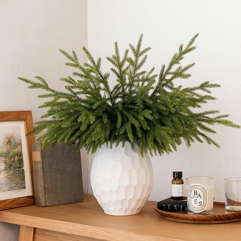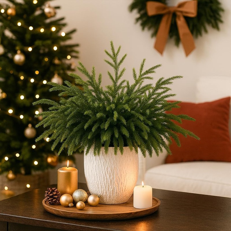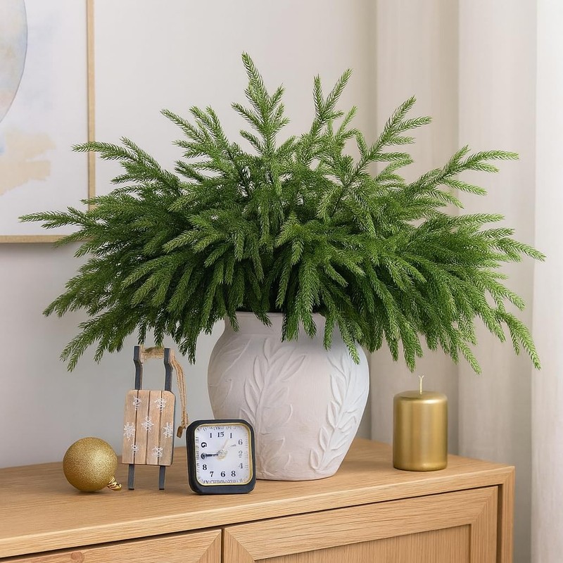 - Realistic Norfolk Pine Stems: Made of premium soft plastic and wire, these artificial pine stems are bendable, reusable, and feature a real touch texture that mimics natural norfolk pine