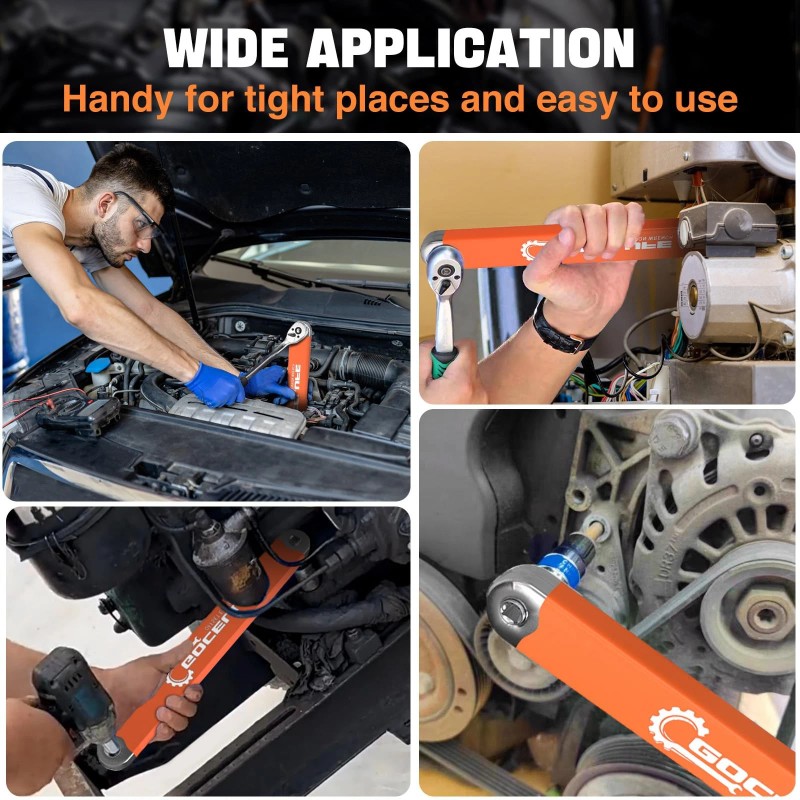 【Multi-functional Offset Design】Ideal for tight spaces, the speed pro offset extension wrench's zero offset design effortlessly navigates confined areas, saving time and hassle. Its innovation suits a range of challenging tasks
