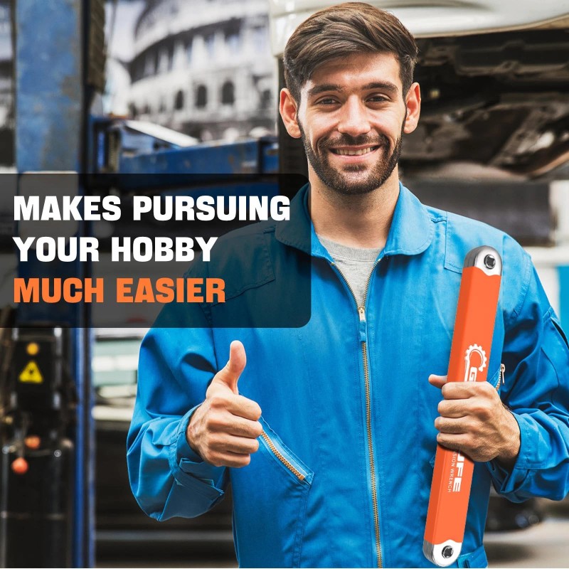 【Versatile Tool】Tailored for water pumps, power steering systems, generators, and air conditioning units, enhancing efficiency. Featuring a wrench extender tool for extended reach and torque, perfect for brake jobs, transmission work, radiator maintenance, and lawn mower upkeep