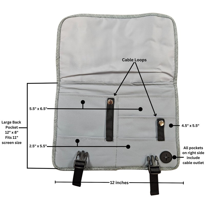 - MORE POCKETS -Equipped with eight stretchy pockets of varying sizes for your tablet, phone, chargers, earbuds, glasses, sanitizer, and more. Perfect for keeping your children entertained and allowing kids to easily reach toys, snacks, headphones, crayons, coloring books, or anything else needed in-flight.