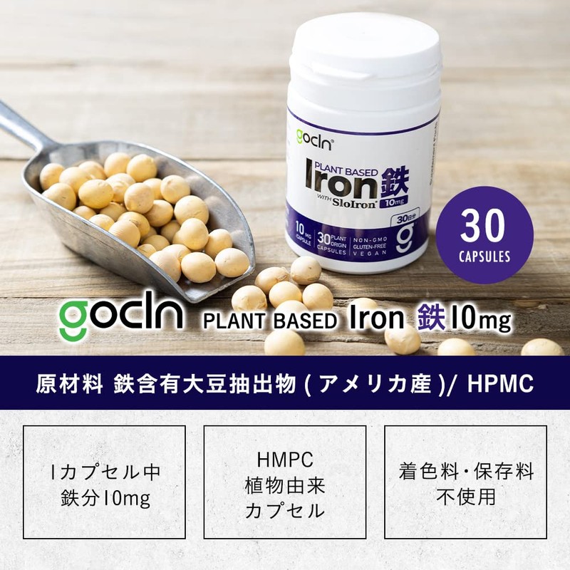GoCLN (ゴークリーン) 鉄100% オーガニック 認証原料 100% 植物由来 鉄分 フェリチン鉄 サプリメント10mg 30粒 1ヶ月分 1日1粒...