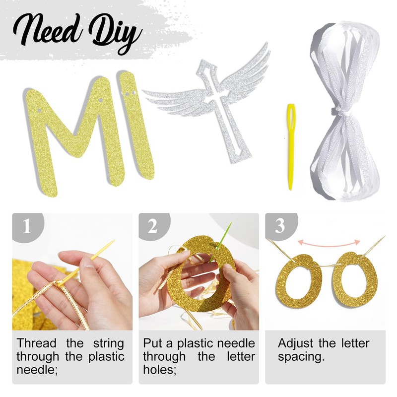 - 【Easy to Assemble】: The letters and the string are separate, and you need to string them together. First thread the string through the plastic needle, then through the small holes in the letters, and finally adjust the distance between the letters.