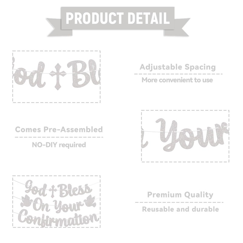 ๏ปฟ The "God Bless On Your Confirmation" banner is an exquisite product suitable for various occasions, which is not only decorative, but also expresses blessings and gratitude.