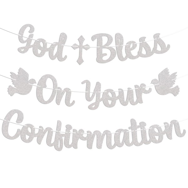 God Bless On Your Confirmation Banner - Mi Confirmacion Decor, God Bless Banner, Confirmation Party Decorations Silver Glitter