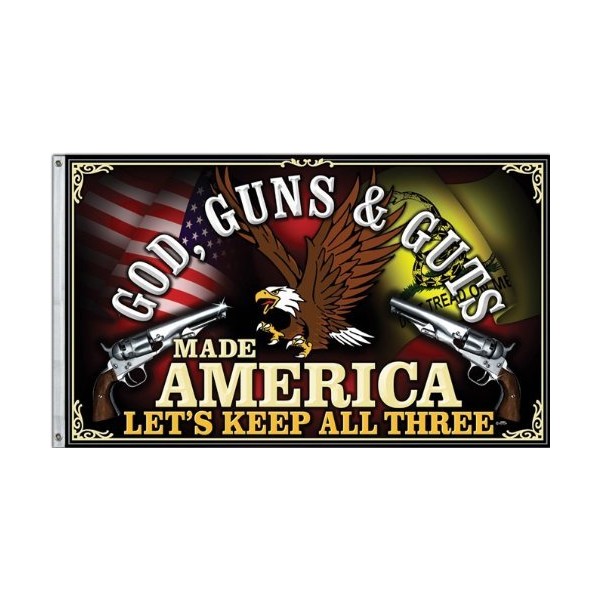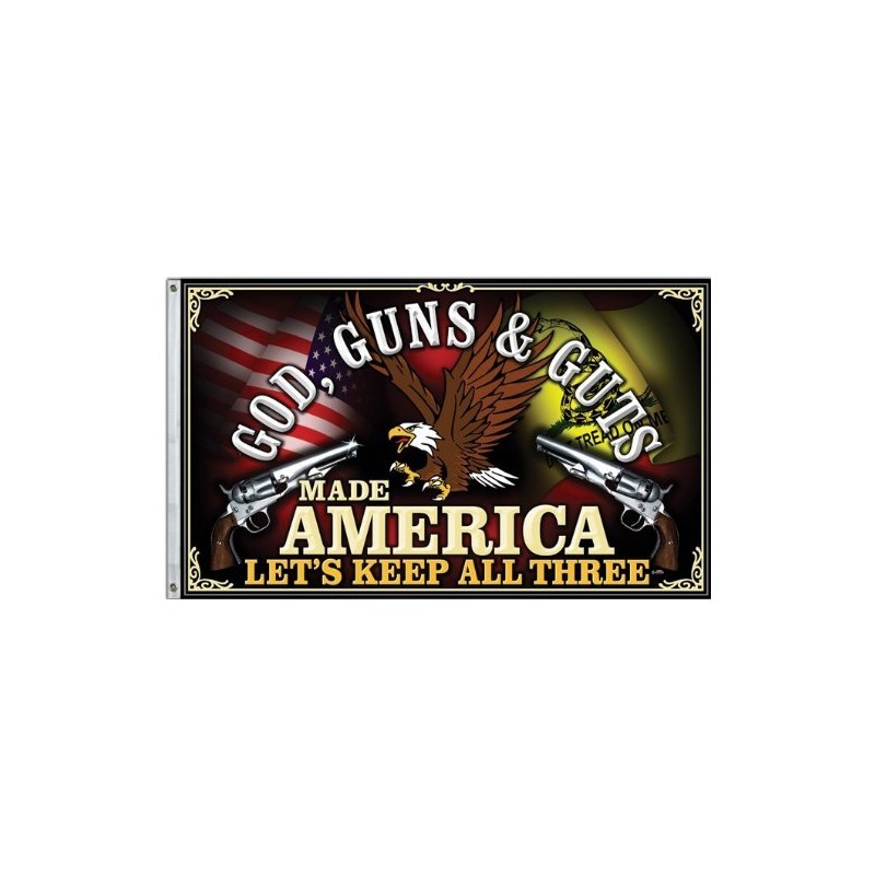 GOD, GUNS & GUTS MADE AMERICA LET'S KEEP ALL THREE! 3'x5' Flag