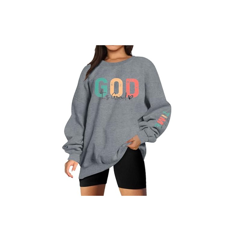 - Features: Christian sweatshirts for women, womens oversized faith shirt, long sleeve jesus shirt, christian bible graphic hoodie, oversized religious t-shirt, God Is Good letter print, crew neck, casual and trendy.