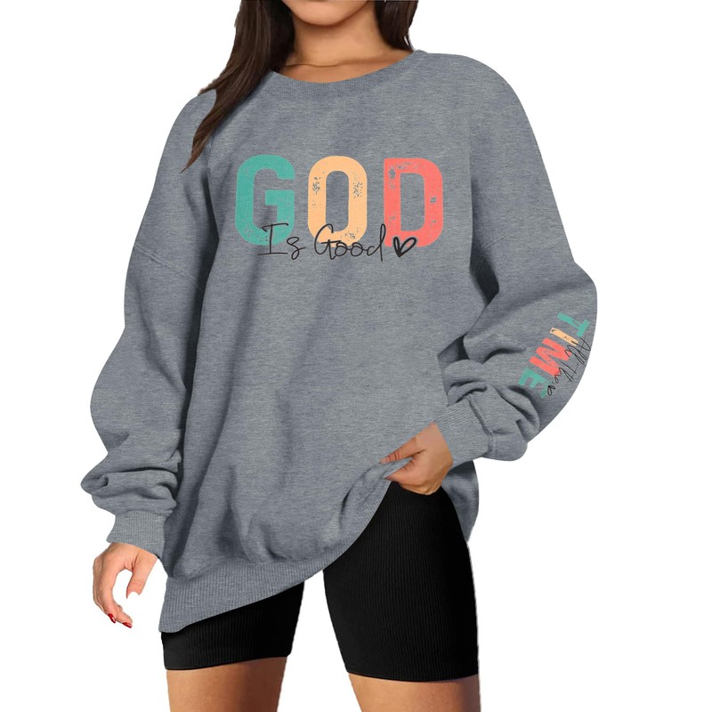 God is Good Sweatshirt Christian Shirts for Women Oversized Jesus Religious Pullover Bible Verse Inspirational Tops Grey