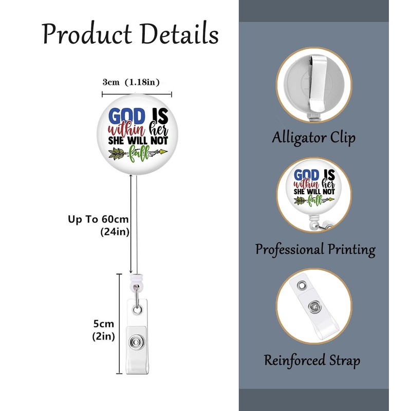 God is Within Her SHE Will Not Fall - Psalm 46:5 - Badge Reel - Retractable ID Holder - #253
