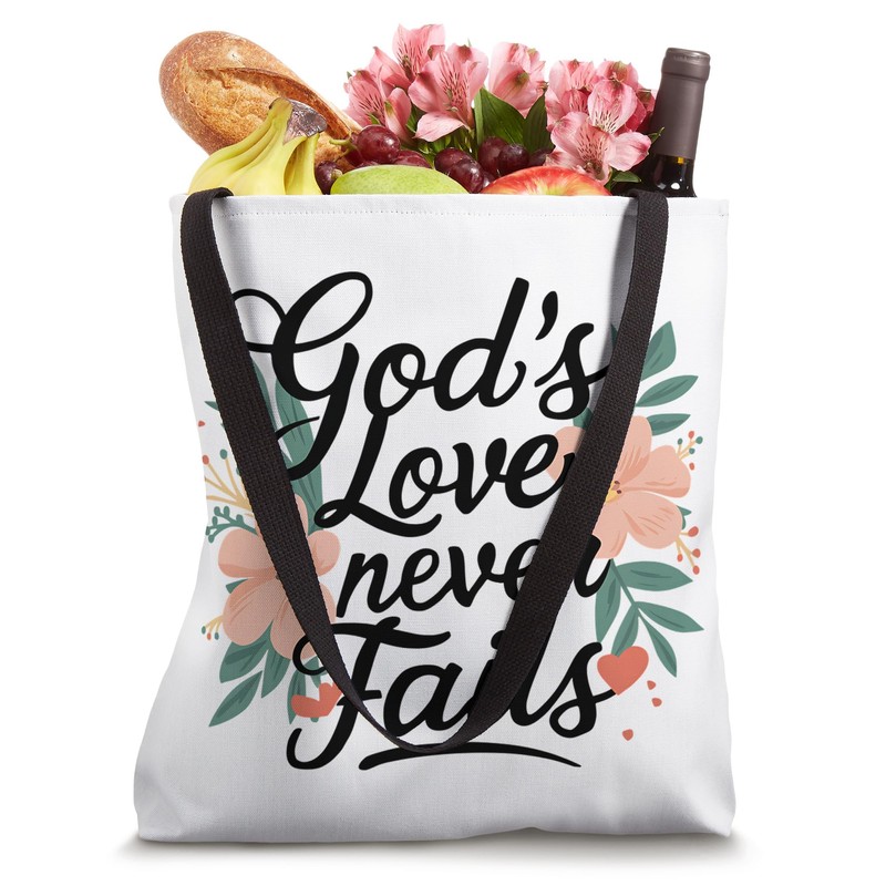 God's Love Never Fails Inspirational Boho Christian Quote Tote Bag