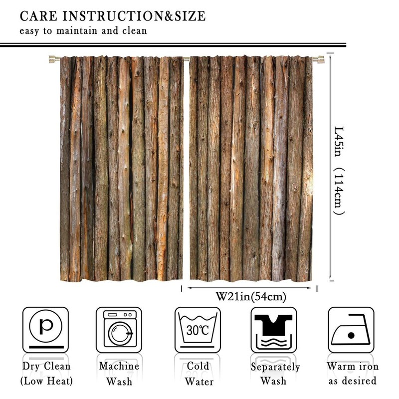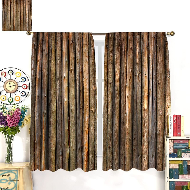 GoDazzling Rustic Wooden Barn Door Blackout Windows Curtains, Old Wood Texture A Row of Wooden Posts, for Living Room Bedroom 42x45in 2 Panels
