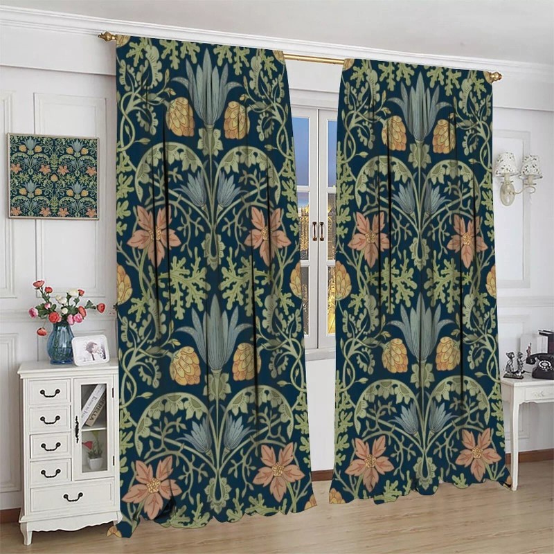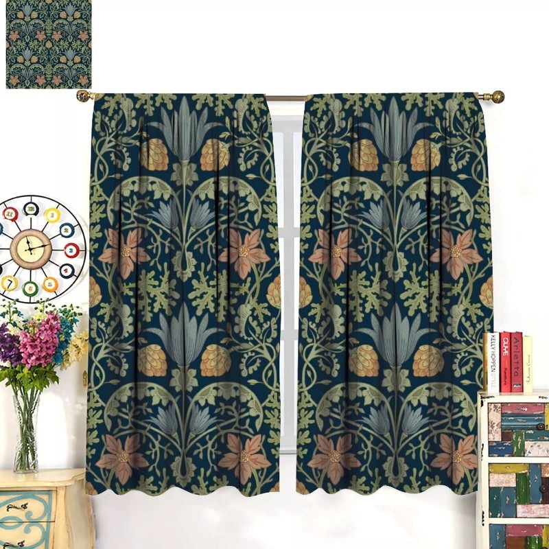 GoDazzling William Morris Floral Blackout Curtains, Vintage Flower Retro Boho Botanical ...