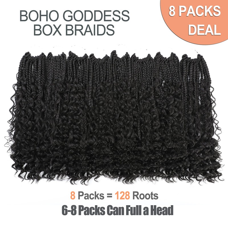 • Hair style: Bohemian goddess box braids, boho box braids, boho messy goddess box braids, goddess box braids, crochet hair pre-looped.