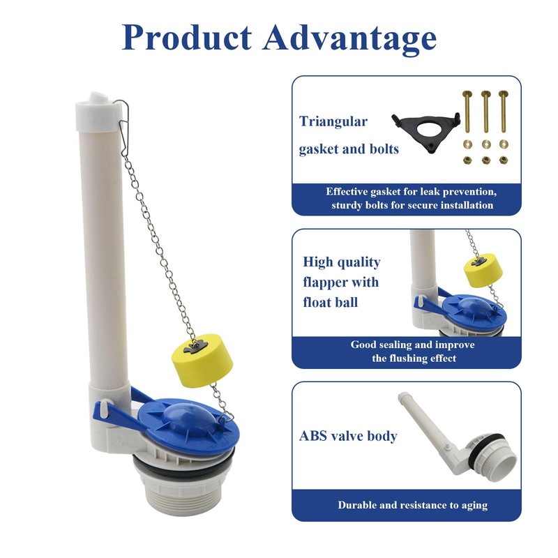 - 3.Efficient Flushing: Equipped with a rubber flap toilet flush valve for smooth and efficient flushing. The float ball and triangular gasket components work together to provide reliable flushing every time.