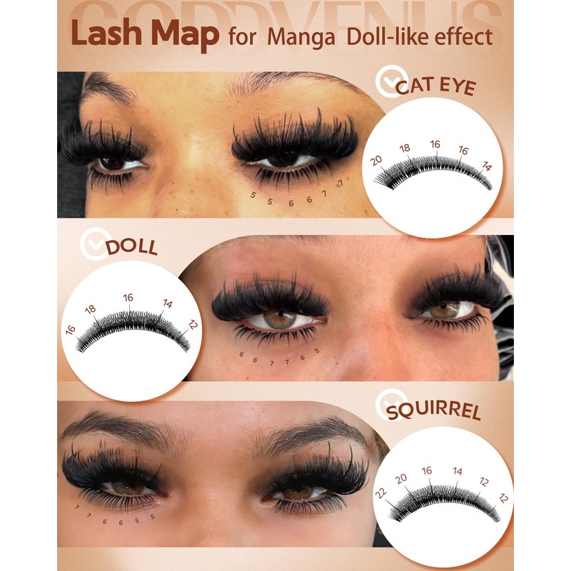 - 5. Customizable & Reusable: These anime lash clusters can be arranged with your own lash map to create different styles—from natural wispy lash extensions to bold manga full-eye effects. With gentle care, the fairy eyelash clusters are reusable, offering more looks and less waste.