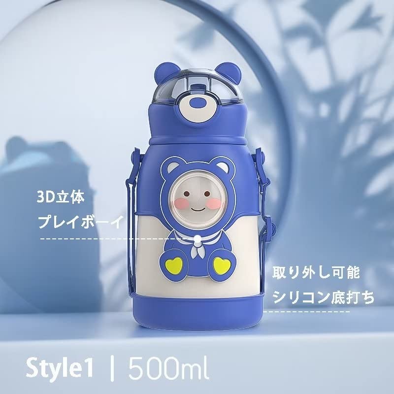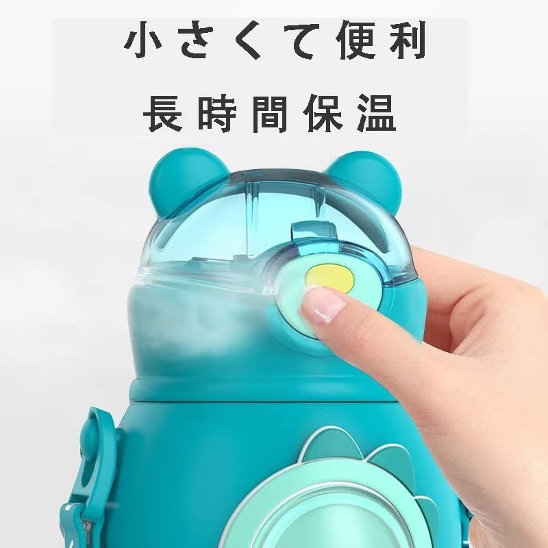 Godfun Children's Water Bottle, 16.9 fl oz (500 ml), Vacuum Insulated, Thermos Flask with Straw, 316 Stainless Steel, One-Touch Straw Included, Strap, Anime, Cute, Convenient to Carry, Students, 16.9