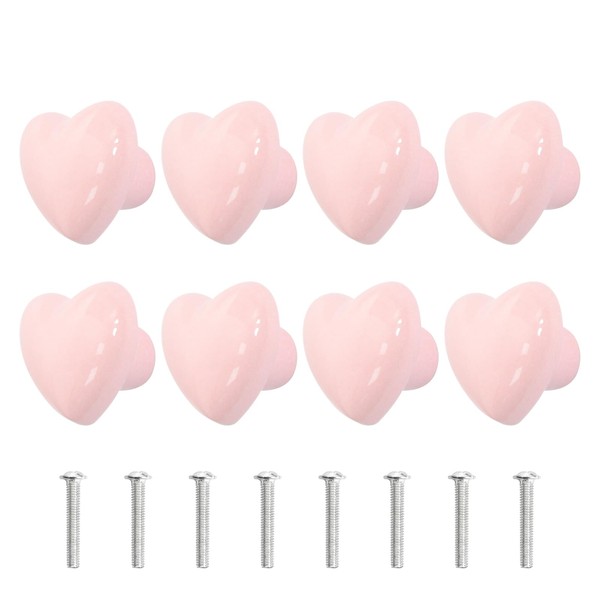Godneei 8 PCS Pink Ceramic Heart Shaped Drawer Knobs, Single Hole Pull Handle, Wardrobe Knobs for Dresser Drawers, Cupboard, Cabinet, Door