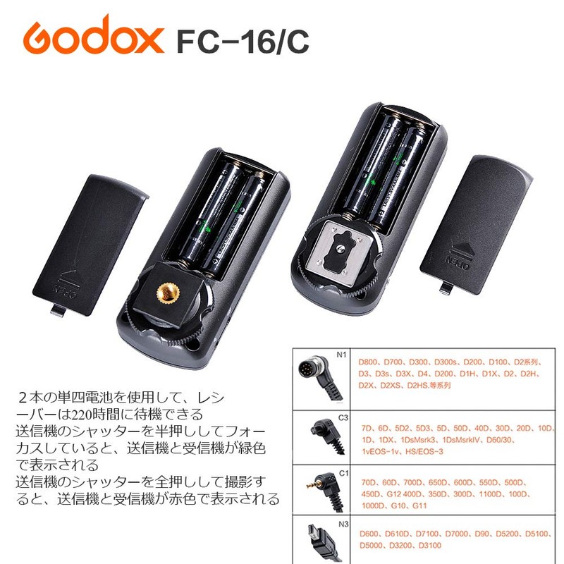 GODOX FC-16C Transmitter + Receiver Set, 2.4G, 16 Channels, Wireless Release, Studio Strobe Trigger Shutter, Camera Shutter, Compatible with Canon Camera, 7D, 50D, 40D, 30D, 5D, 20D, 10D, 5D, 5D, Mark II, D2000, etc